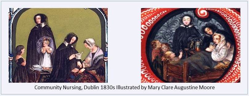 It is of note that Mary Clare Moore who, practically speaking, received her 'nursing training' from Catherine McAuley over their seven months working together at the Townsend Street Depot cholera hospital, was to pass on her nursing knowledge and experience to Florence Nightingale twenty-two years later during their seventeen months working together at the Scutari Barrack hospital during the Crimean war.