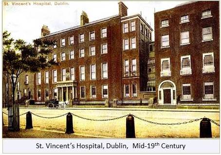 Illustration of St. Vincent's Hospital Dublin in the mid-19th century. Courtesy of the Religious Sisters of Charity, Dublin, Ireland.