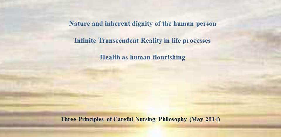 In August 2014 nurses concerned with the model held a half-day meeting chaired by the Careful Nursing philosophy advisor, Dr. Mette Lebech of the Department of Philosophy at the National University of Ireland Maynooth, for discussion and clarification of the philosophical assumptions . Discussion of the philosophy led to identifying the philosophical assumptions as principles and specifying two of these more clearly. Human person became the nature and inherent dignity of the human person, and infinite transcendent reality becaome infinite transcendent reality in life processes