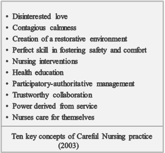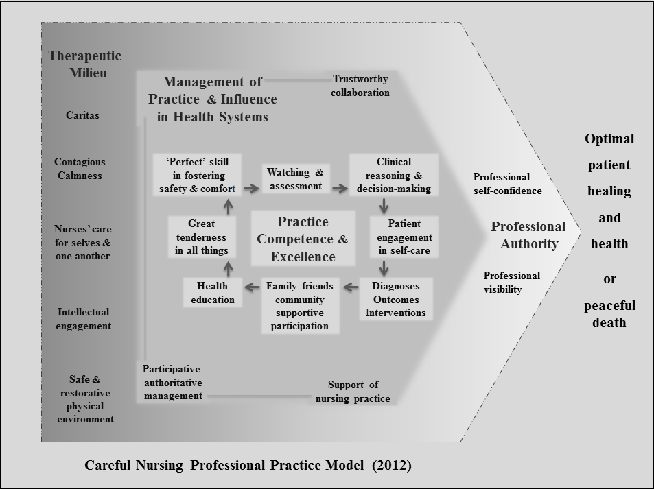 Meehan TC (2012) The Careful Nursing philosophy and professional practice model. Journal of Clinical Nursing, 21, 2905-2916.