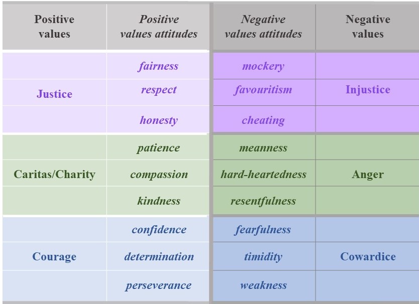 ♦ It is important that we also think about and reflect on negative values because this helps us to be aware of them and avoid implementing them in our practice to every possible extent.