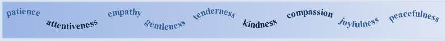 Being peaceful is a value which is also harmonises closely with our spiritual being and follows closely on joy. Peacefulness can be thought of as arising from joy and bringing with it the ability not to be disturbed by outward things; it allows our intention to rest on the helping, healing purpose of our practice. Peacefulness is closely associated with our ability to have patience in our practice and allow for delay when it is needed for a healing outcome. Peacefulness has a unifying influence and especially communicates itself to others so that in being peaceful in our practice we foster peacefulness in patients, colleagues and others.